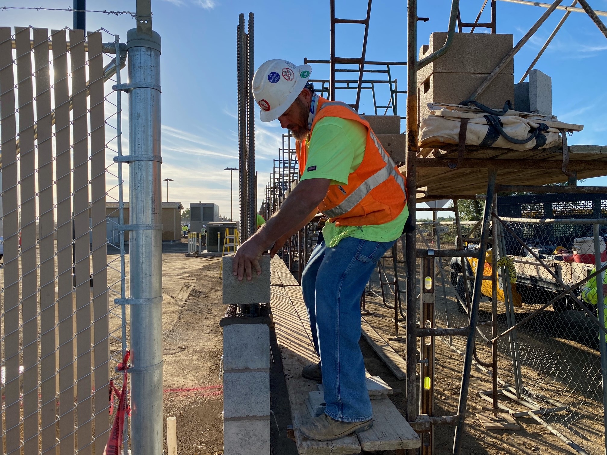 Matt Kirkes, laying block for JD Wait Masonry at the Newman Water Treatment Plant