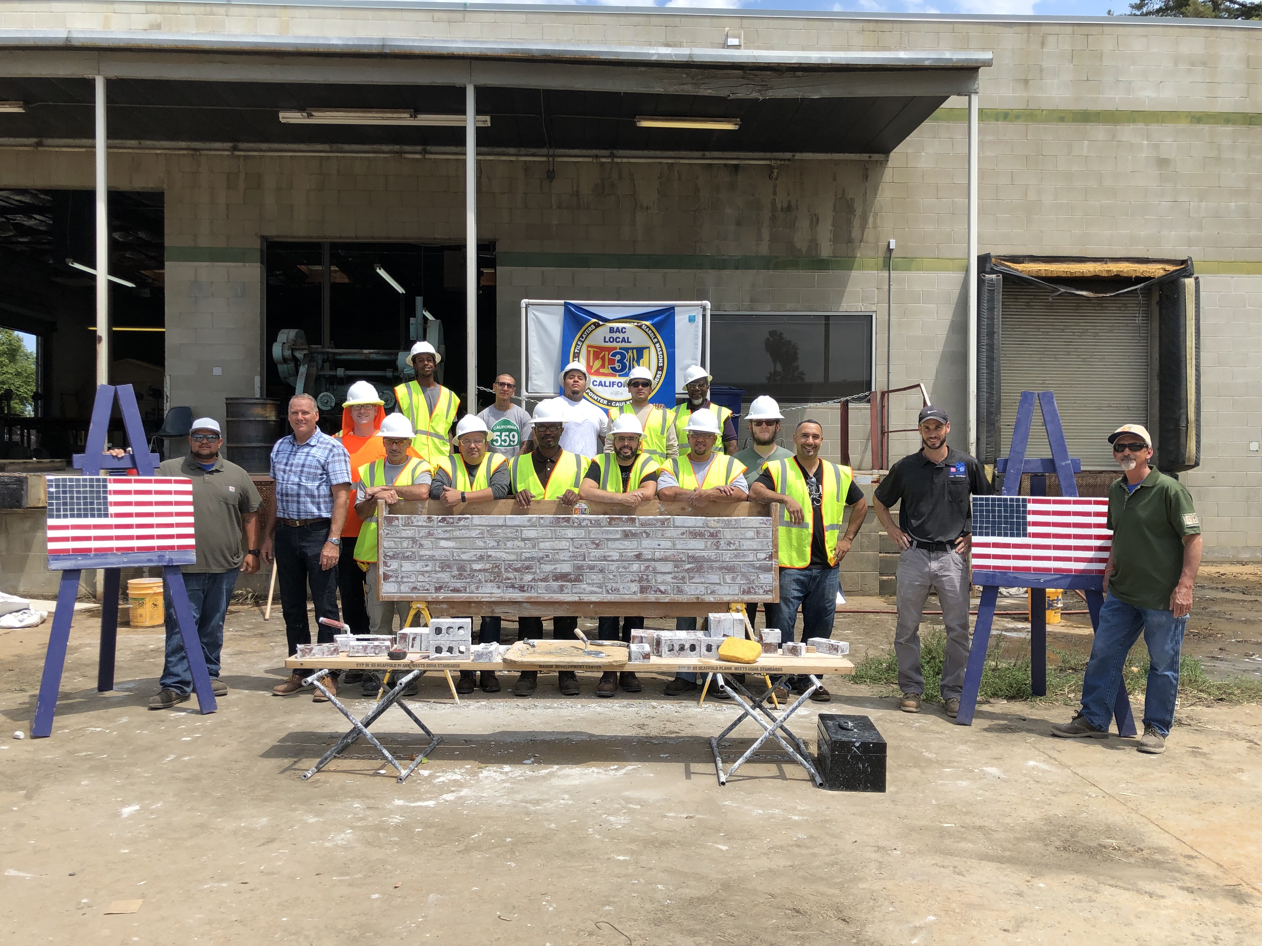 There are a lot of ways to reach out to the younger workforce generation and to those that have been in the workforce already. BAC local 3 does jobsite visits, craft presentations, career fairs, and pre apprenticeship cohorts. Recently, we were asked to attend and be apart of a six-week Multi-craft core curriculum (MC3) pre-apprenticeship course in Fresno by the Fresno- Madera- Kings- Tulare Building Trades Council. This was a class of thirteen eager individuals looking for a pathway into an apprenticeship program. BAC local 3 put on a craft presentation along with hands on demonstrations including American flags made from tile adhered to hardi backer, we also had the class participate in brick wall mockups. This was a successful day in the valley.